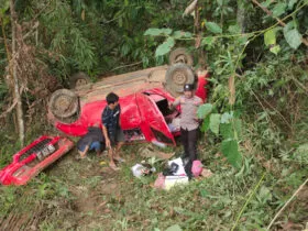 Mobil Wuling Alami Pecah Ban Saat Melambung, Akibatnya Mobil Yang Dikemudi Kades Andeo Masuk Jurang