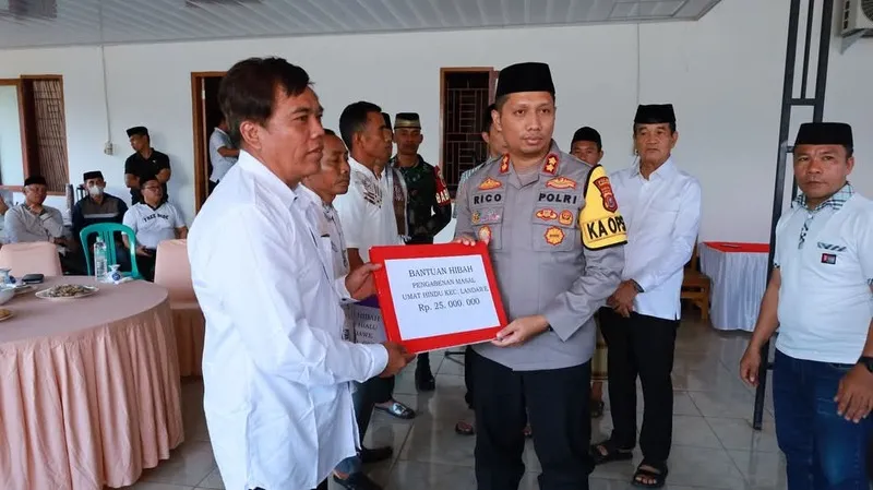 Ditempat itu juga dilakukan penyerahan bantuan dana hibah ratusan juta untuk pembangunan sarana ibadah masyarakat, serta penyerahan bantuan ratusan paket sembako yang diperuntukkan bagi masyarakat.