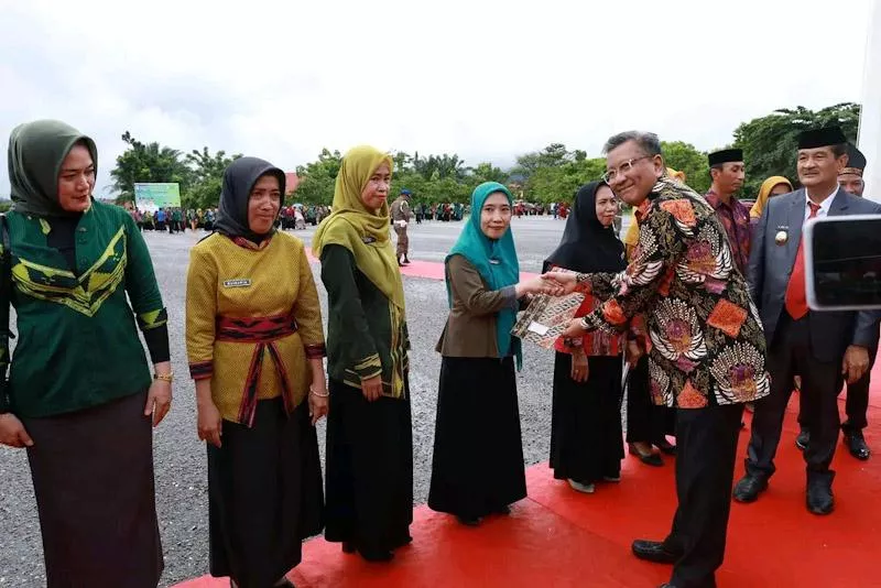 Usai melaksanakan upacara dalam kesempatan itu, ia juga menyerahkan piagam penghargaan sebagai bentuk apresiasi kepada para Kepala Sekolah dan guru berprestasi di Konawe Utara .