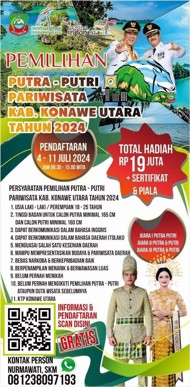 Dinas Pariwisata Konut Buka Pendaftaran Pemilihan Putra-Putri Pariwisata 2024, Daftar Gratis Total Hadiah Puluhan Juta Juli 5, 2024 367 Views Add Comment 0 Menit Membaca Admin SultraLink Juli 5, 2024