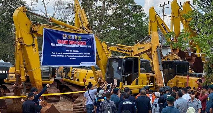 Direktur Jenderal Penegakan Hukum KLHK Rasio Ridho Sani mengatakan, selain dua tersangka, pihaknya juga mengamankan barang bukti sebanyak 17 unit alat berat Excavator PC 200 telah disita dan dititipkan di Rumah Penyimpanan Benda Sitaan Negara (Rupbasan) Kelas |