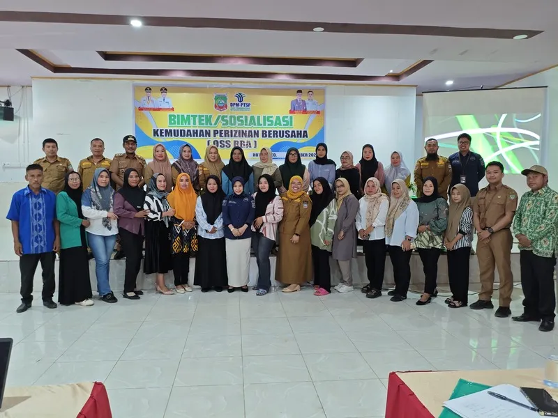 Sultralink.com, Konawe Utara – Dinas Penanaman Modal dan Pelayanan Terpadu Satu Pintu (DPMPTSP) Kabupaten Konawe Utara (Konut), Sulawesi Tenggara (Sultra) menggelar Bimbingan Teknis (Bimtek) dalam rangka sosialisasi kemudahan perizinan berusaha melalui sistem Online Single Submission (OSS) RBA (Risiko Berdasarkan Approvals). Kegiatan ini bertujuan untuk memberikan pemahaman kepada pelaku usaha, khususnya Usaha Mikro, Kecil, dan Menengah (UMKM), mengenai pentingnya perizinan dan kemudahan yang diberikan oleh sistem OSS RBA dalam menjalankan usaha.