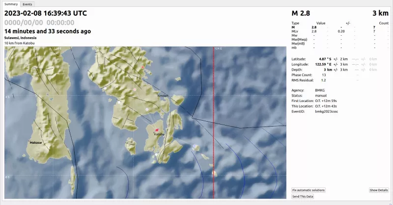 Kepala BMKG Kendari, Rudin menerangkan Gempa tersebut merupakan gempabumi susulan M4,1 Pukul 00:01:57 WITA – Hingga pukul 01.10 WITA, (9/2/2023).