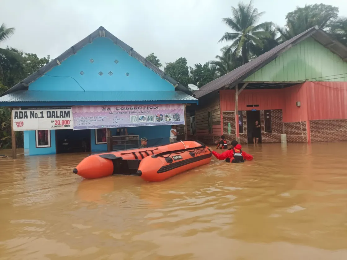 Air sungai anggomate meluap hingga membanjiri pemukiman warga, pasar tempat menjual dan jalan umum.