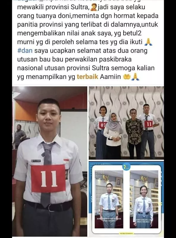Saya meminta dengan hormat kepada panitia provinsi yang terlibat proses seleksi untuk mengembalikan nilai anak saya yang betul-betul murni diraih selama proses seleksi,” ucapnya.