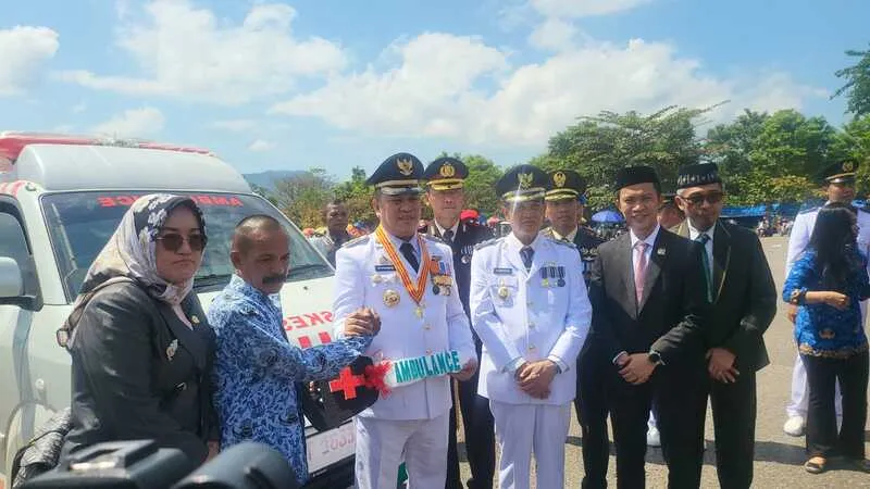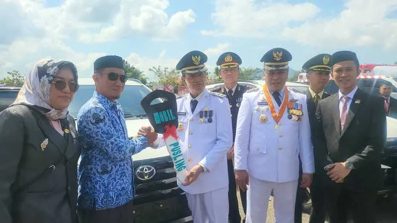 Momen HUT Kemerdekaan RI, Bupati Konut Bersama Wakil Bupati Dan Ketua DPRD Serahkan Batuan 15 Mobil, 13 Motor, 12 Laptop Kepada Pegawai Kesehatan Dinkes Konut