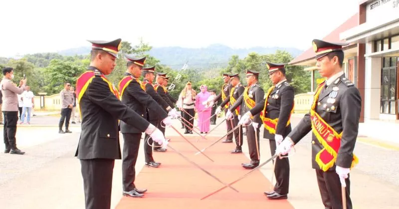 SultraLink.com, Konawe Utara-Kepala Kepolisian Resor (Kapolres) Konawe Utara (Konu), Sulawesi Tenggara (Sultra), AKBP Priyo Utomo, S.H.,S.I K. disambut dengan tradisi pedang pora dan tarian monotambe. Penyambutan tersebut dilakukan tepat di gerbang Mapolres Konut, Jumat (6/1/2023).