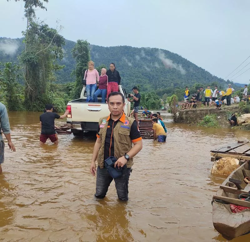 Bahkan, ia pun juga ikut membantu masyarakat untuk menaikkan kendaraan masyarakat ke perahu pincara, dan rakit yang digunakan untuk melintasi kawasan banjir.