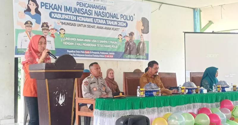 Launching Imunisasi Polio Nasional berlangsung di Aula Kelurahan Andowia, Kecamatan Andowia, Selasa 23 Juli 2024.