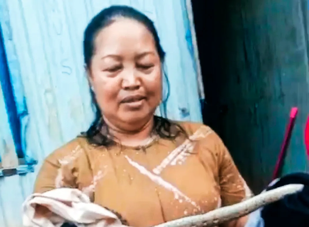 Bagaimana tidak, wanita ini beranikan diri menangkap seekor ular piton berbisa berukurang sekitar 1 meter hanya dengan menggunakan selemar kain.