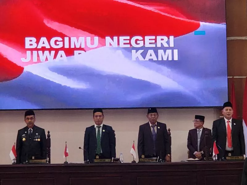 Lagu mars Bagimu Negeri menjadi penutup kegiatan Sidang Paripurna Peresmian Dan Pengucapan Sumpah Janji Pimpinan DPRD Kabupaten Konut.