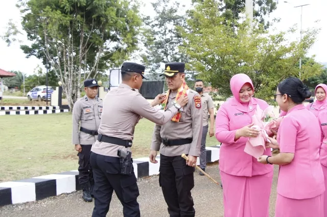 Ketgam: Kapolres Konut bersama Ketua Bhayangkari saat menyambangi Polsek Wiwirano SultraLink.com, ...