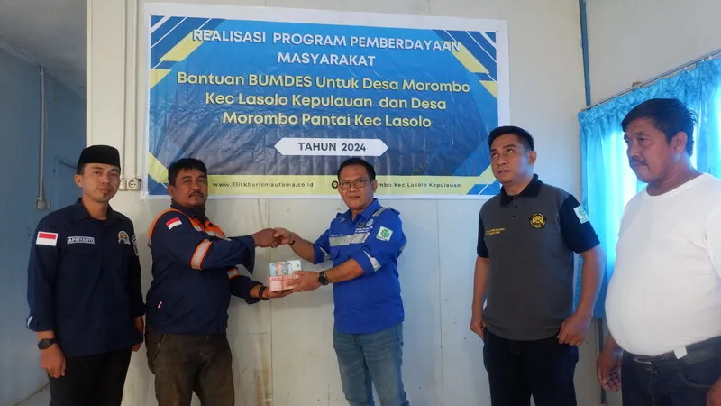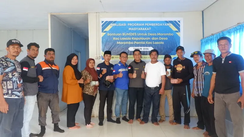Mewakili Kepala Desa Morombo Pantai, Ketua BPD Desa Morombo Pantai Apriyanto, secara resmi menerima bantuan tersebut senilai Rp 125 juta tunai.