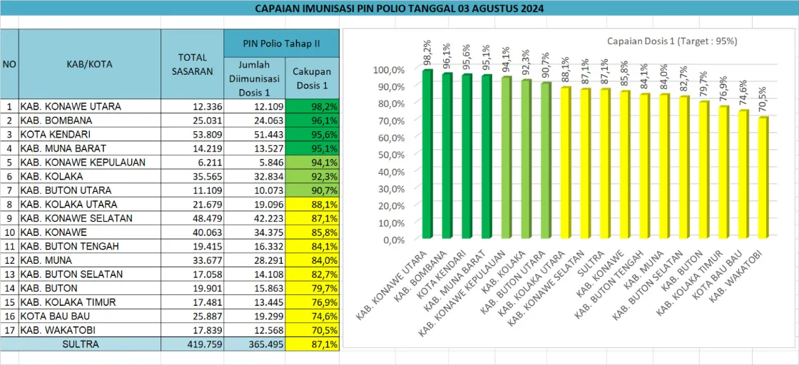 Di Sulawesi Tenggara (Sultra), khususnya Kabupaten Konawe Utara (Konut), menunjukkan kerja nyata dalam program imunisasi nasional polio.