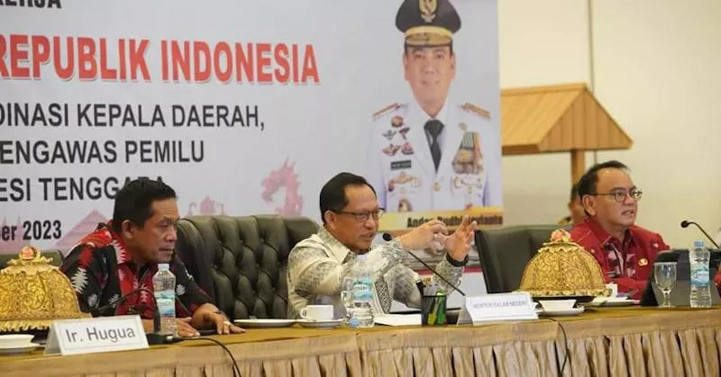 Diinformasikan, kunker mendagri dalam rangka mengadakan rapat koordinasi bersama Pj Gubernur Sultra, Andap Budhi Revianto, para bupati dan wali kota, serta penyelenggara Pemilu se-Provinsi Sultra.