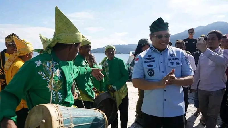 Kehadiran para wisatawan disambut meriah oleh Bupati Konawe Utara Ruksamin dan jajarannya. Diawal dengan tarian adat dan iring-iringan perahu nelayan.